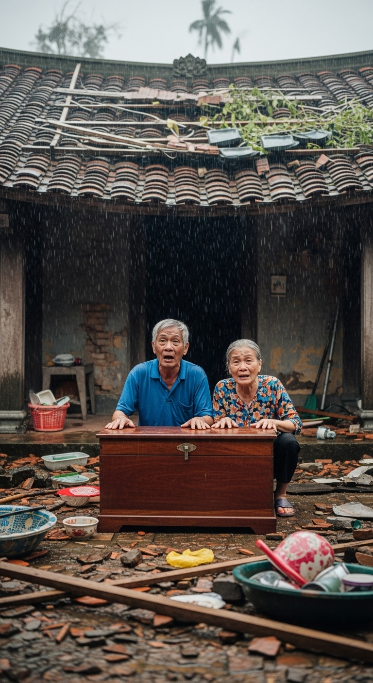 Thế rồi một cơn bão lớn ập đến. Gió rít xuyên đêm, mưa như trút. Sáng hôm sau, khi bước ra sân, tôi chết lặng: mái ngói đã bị cuốn sạch, tường gỗ đổ nghiêng, cả ngôi nhà như tan nát.