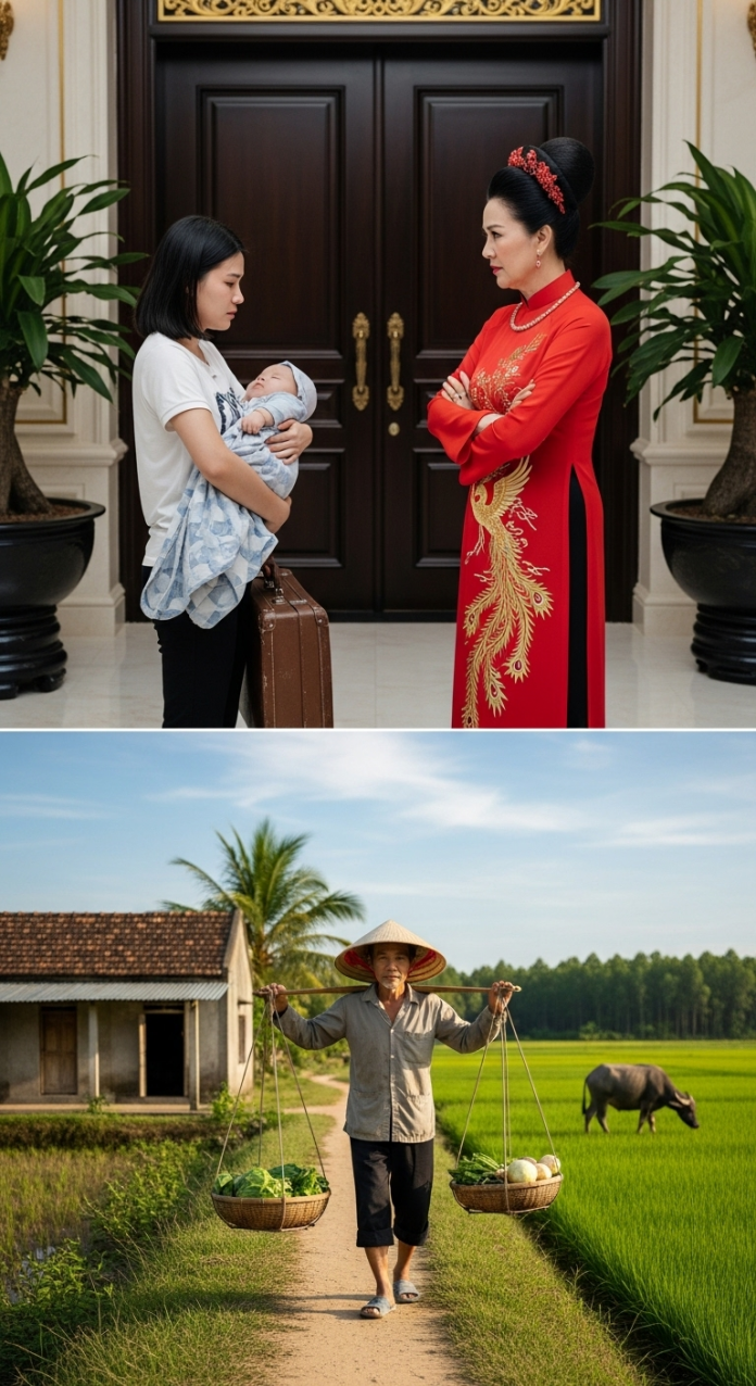Đỉnh điểm là hôm bố tôi lên lần nữa, chỉ để thăm con gái bị ốm sau sinh. Ông ngồi ngoài cổng, tay cầm túi cam vàng ươm. Mẹ chồng tôi ra, liếc một cái, rồi buông lời độc địa: