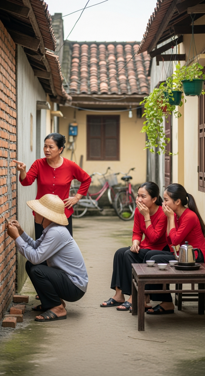 Điều đầu tiên anh làm khi bước ra khỏi cổng không phải là nhìn cái xe máy hay cái sân, mà là đứng nhìn đội thợ đang hì hục phá dỡ bức tường nhà bà Lụa.