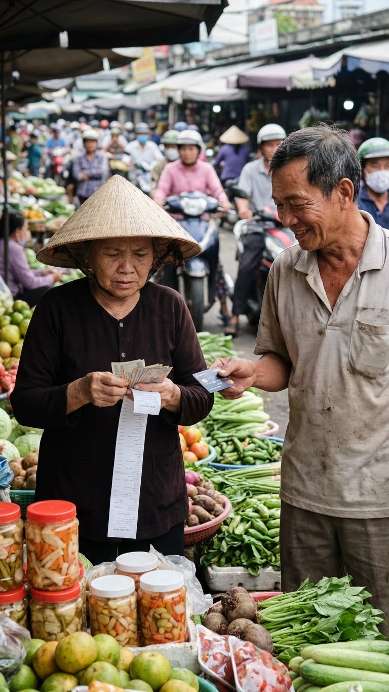 Hôm đó, tôi cầm thẻ ra chợ lớn mua ít đồ cúng. Khi tính tiền, bà thu ngân chợt nói: