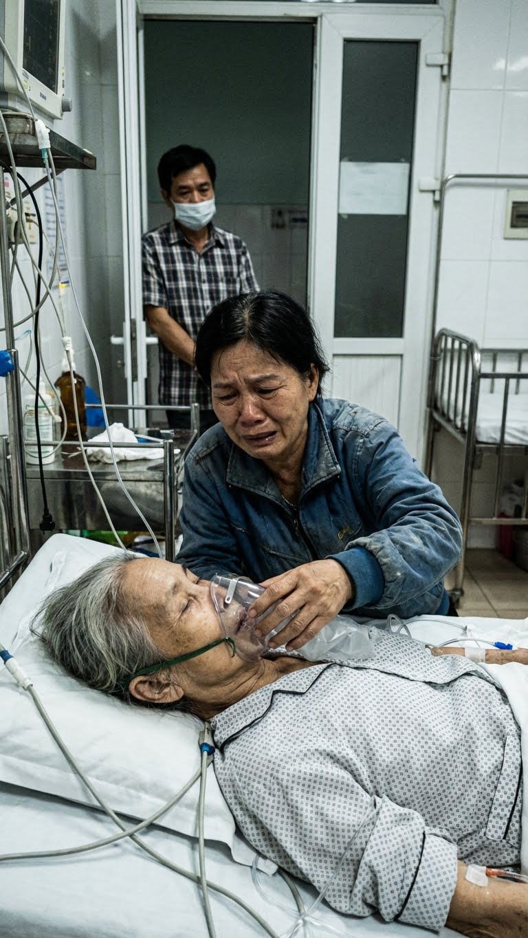 Mẹ tôi yếu, tay run run, ánh mắt mệt mỏi và hoang mang. Bà nhìn vợ tôi như đang cố hiểu điều gì đó nhưng không còn đủ tỉnh táo.