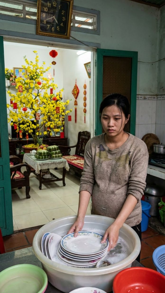 Cái lạnh c//ắt d/a c/ắt th//ịt của những ngày đầu xuân không làm tôi ru/n r/ẩy bằng sự tủi thân đang dâng trào trong lòng. Tôi – một bà b//ầu 8 tháng, b/ụng t/o vượt mặt, di chuyển nặng nề như một con cánh cụt – đang phải cúi gập người bên giếng nước lạnh ngắt để xử lý “bãi chiến trường” bát đũa của 5 mâm cỗ. Đây là cái Tết đầu tiên tôi về làm dâu.