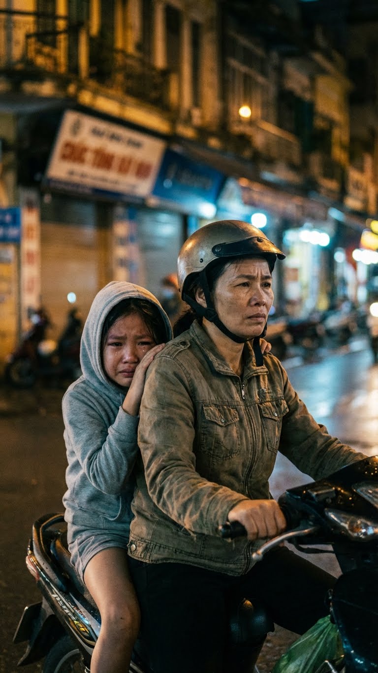 Lần đầu tiên tôi nhận ra điều bất thường là vào một buổi tối Chủ nhật. Tôi vừa dắt xe vào sân thì Thảo My từ trong nhà ngoại chạy ra, mặt đỏ bừng, mắt sưng húp. Con bé lao thẳng lên xe, ôm chặt lưng tôi mà nức nở.