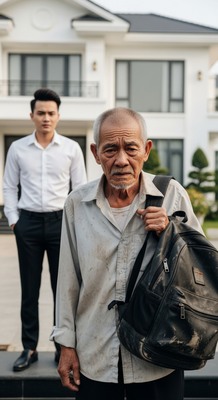 Ông lặng lẽ quay lưng, kéo lại chiếc balo rách, bước đi từng bước chậm chạp. Trước khi rời đi, ông chỉ ngoái nhìn cánh cổng lần cuối… nơi con gái ông đang sống mà ông không được phép gặp.