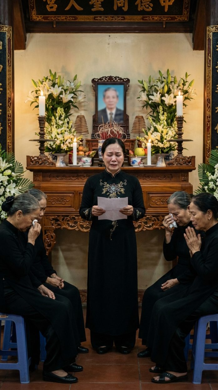 Ngày làm lễ 49, họ hàng lại tụ về. Lần này, tôi không né cái bàn có mấy bà thím hay rì rầm. Tôi đặt phong bì màu nâu lên giữa, mở lá thư, đọc tròn từng chữ. Không khóc. Không kể lể. Chỉ đọc.