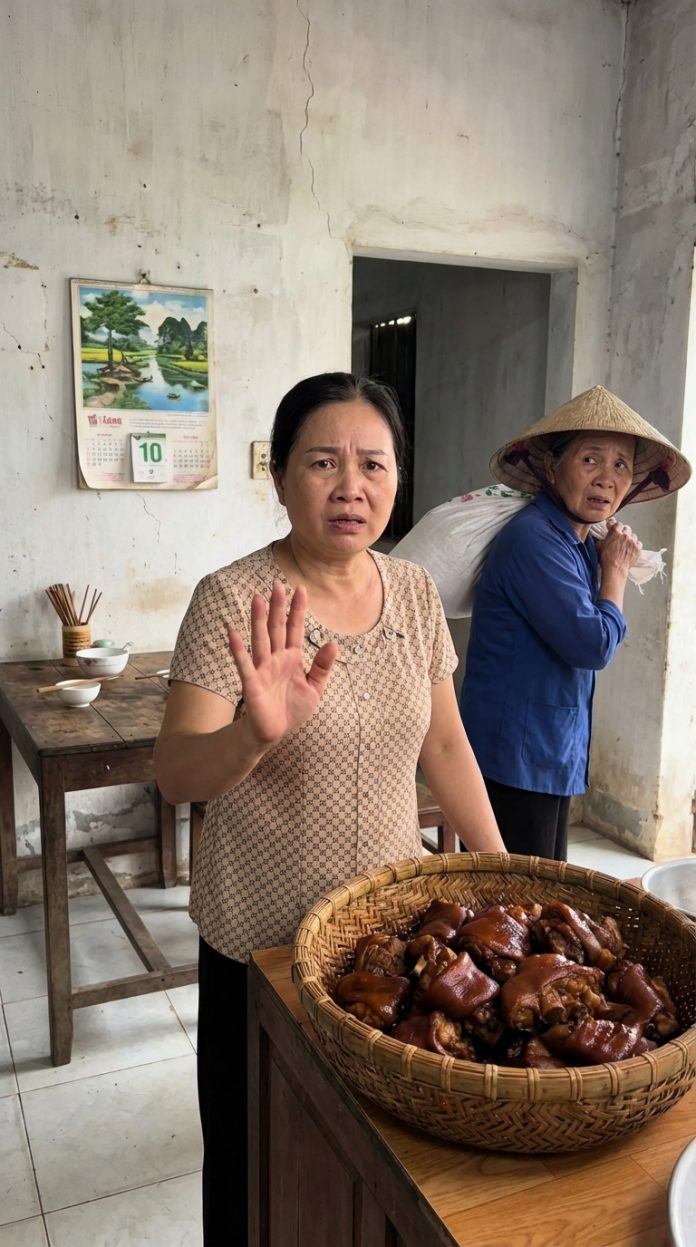 – “Ngày đó mẹ mang chân giò đi thật… dại quá. May có mẹ con Hân nhắc khéo… chứ không thì mẹ còn gây chuyện lớn hơn.”