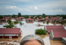 Bà cụ 83 tuổi ngồi bên nền nhà ngập đến đầu...