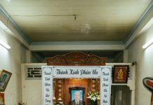 Bà Tính ngồi trên xe lăn, lặng lẽ nhìn theo, trong...