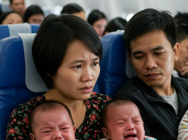 Người mẹ đ/ơn th/ân bị mắ/ng m/ỏ vì để 2 con sinh đôi khóc trên máy bay, đúng lúc không biết phải làm sao...