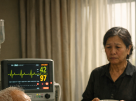 Câu nói ngắt quãng giữa chừng, rồi màn hình tim đột ngột kéo dài thành một tiếng “tít” vô hồn.