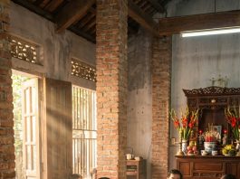 Trên bức tường lớn đối diện sofa, một di ảnh được...