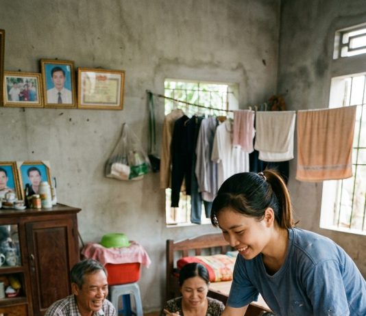 Ngày Cường đưa Hoa về ra mắt gia đình, trong bụn/g...