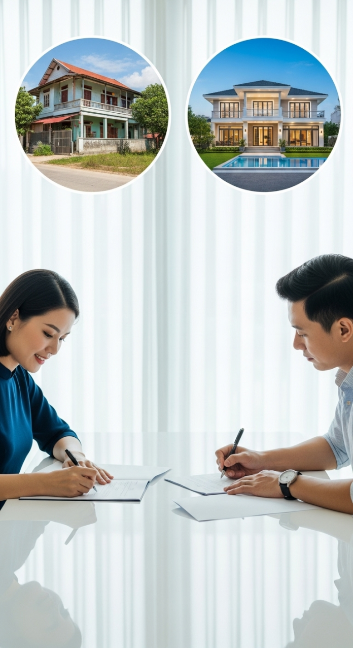 Tôi nhìn anh, lặng im ký giấy. Dù mảnh đất ấy đứng tên tôi, nhưng vì không muốn đôi co, tôi đồng ý “nhường” luôn cả phần sở hữu trên giấy tờ, đổi lại lấy căn nhà nhỏ, xiêu vẹo trong hẻm – chính là nơi tôi từng gom tiền mua năm xưa.