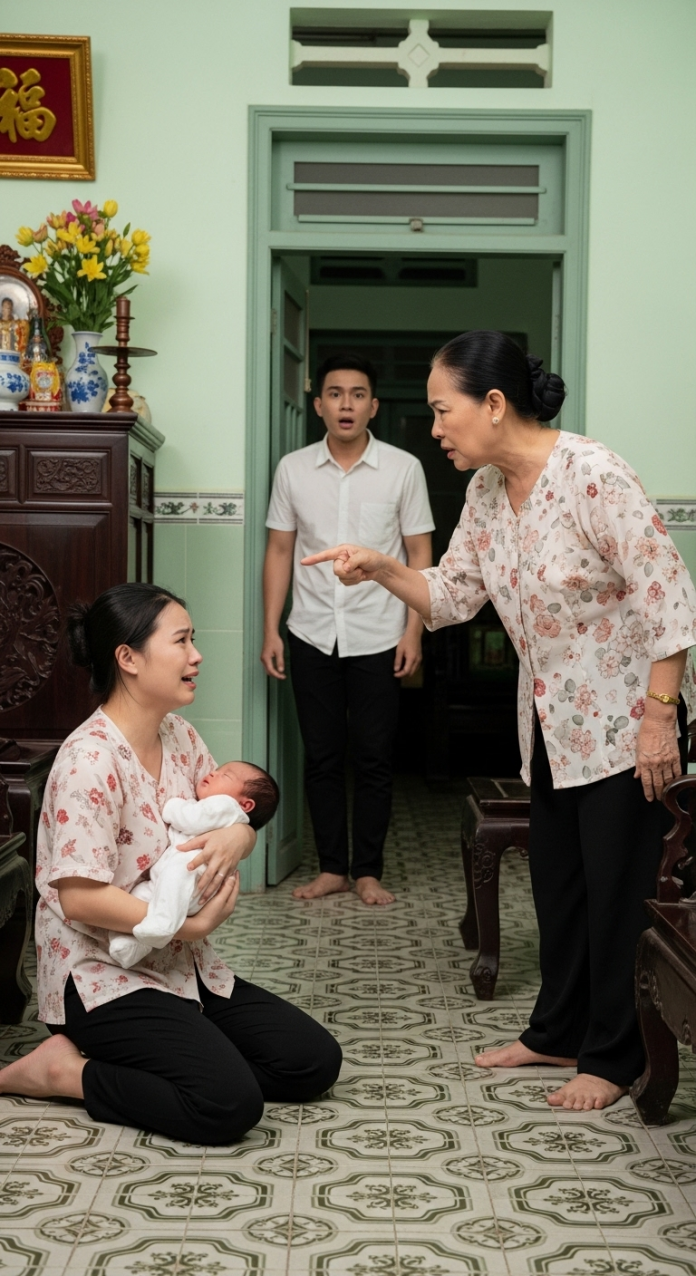Tôi lao đến, đỡ vợ dậy, nhìn vết đỏ trên má cô ấy mà tim như bị ai bóp nghẹt. Mẹ đứng bất động, mặt tái đi, bàn tay run run như không tin vào chính mình. Căn nhà nhỏ im phăng phắc đến ngột ngạt, chỉ còn tiếng con khóc ré lên trong nôi.