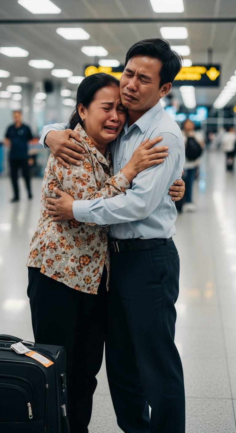 Mai nắm chặt bàn tay chai sần của Hùng, nước mắt cuối cùng cũng không kìm được mà lăn dài trên gò má sạm nắng. Giọng cô run run, nghẹn lại giữa những tiếng ồn ào của dòng người.