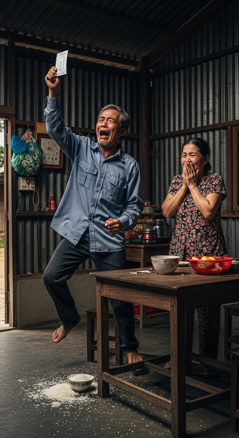 — Sáu tỷ! Bà nó ơi! Tao… tao trúng sáu tỷ rồi!