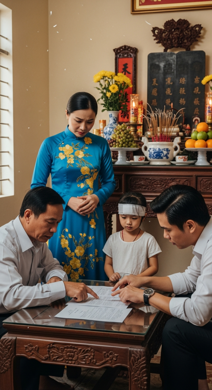 Một lúc sau, cánh cửa phòng bật mở. Cu Bảo bước ra, đôi mắt nó đỏ hoe nhưng không còn khóc. Gương mặt non nớt của nó mang một vẻ nghiêm túc lạ thường, một sự quả quyết không thuộc về một đứa trẻ năm tuổi. Trên tay nó là một phong bì màu trắng ngà, đã cũ và có vài nếp gấp.