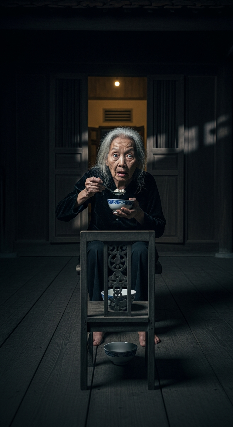 Một lần, không kìm được sự tò mò và nỗi sợ hãi, tôi lén nhìn qua khe cửa sổ. Tim tôi như ngừng đập. Chiếc ghế đối diện mẹ ướt sũng nước, hằn rõ một dấu ngồi lạnh ngắt như thể có ai đó vừa ngồi dậy. Bát cơm trước mặt bà chỉ còn lại một nửa. Mẹ vẫn ngồi đó, lặng lẽ, gương mặt vô cảm, đôi đũa trên tay từ từ gắp thức ăn bỏ vào một cái bát không.