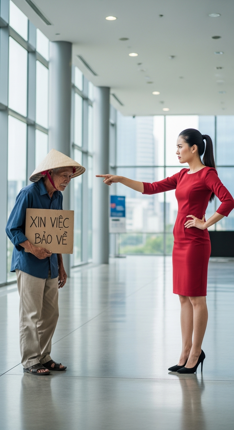 “Ông ơi, ông có nhầm chỗ không vậy?” Cô nói, giọng điệu sắc như dao. “Đây là tập đoàn Hoàng Minh chứ không phải trạm từ thiện. Nhìn ông y như ăn xin, ai mà dám thuê? Quần áo thì xộc xệch, người thì lôi thôi. Chúng tôi cần bảo vệ để giữ gìn hình ảnh cho công ty, chứ không phải để dọa khách hàng chạy mất.”