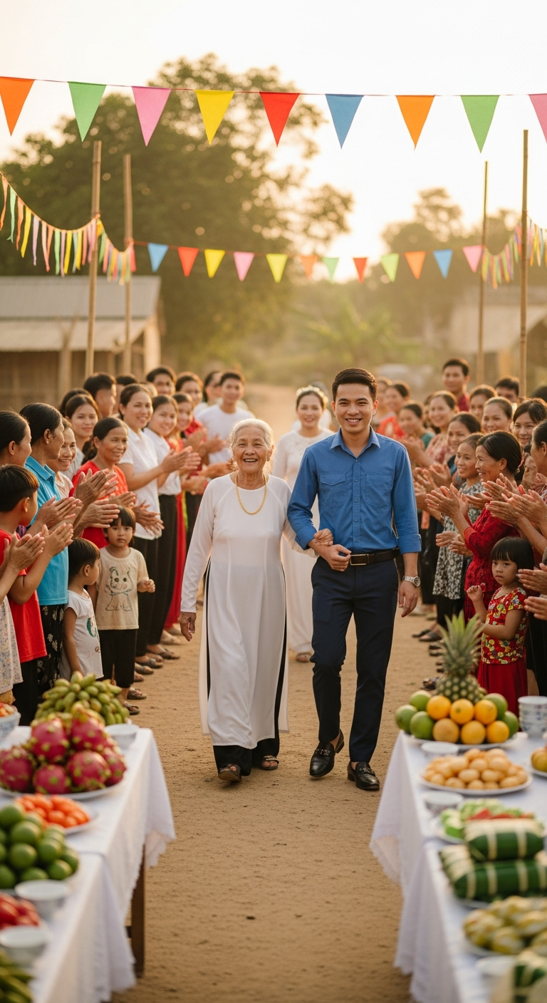 Ngày cưới, trời trong veo. Tôi mặc áo dài trắng, còn Khánh cười tươi đến mức ai nhìn cũng thấy thương. Căn nhà cũ nay sáng đèn, đầy tiếng nói cười. Tôi nghĩ, có lẽ hạnh phúc không bỏ tôi đi, nó chỉ đến trễ một chút.