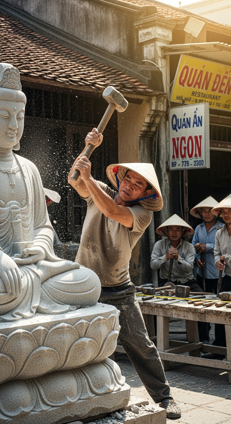 Ông Minh, vốn là người thực dụng, chẳng mấy để tâm đến lời khuyên của hàng xóm: “Ông nên giữ lại, coi như may mắn cho nhà hàng.” Với ông, đây chỉ là một tảng đá cản đường lợi nhuận. Sáng hôm sau, ông quyết định thuê máy khoan và búa đập hòn đá, để mở lối và “giải phóng mặt bằng chục tỷ” như kế hoạch.