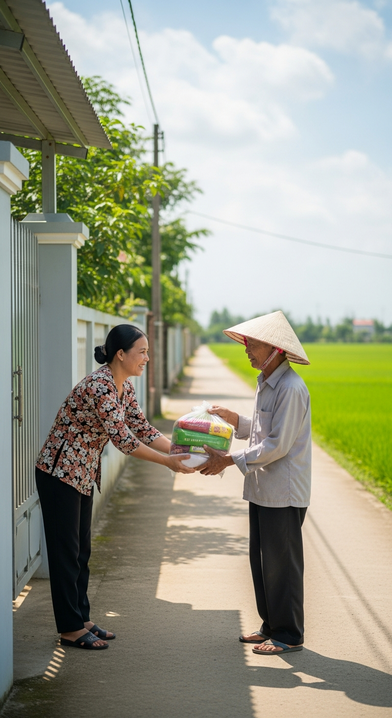 “Ảnh đi rồi… không về nữa. Bảy năm rồi. Ba biết hết, nhưng không nói ai, sợ người ta thương hại. Ổng sống bằng tiền trợ cấp ít ỏi, còn lại dành dụm gửi cho những người già neo đơn khác. Mấy gói mì ổng xin, không phải để ăn…”