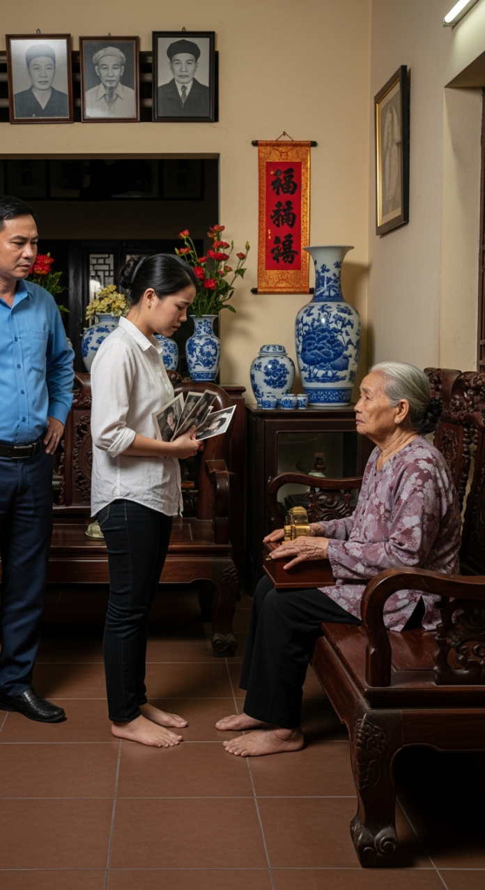 Hai tờ giấy, hai lưỡi dao sắc bén. Một là bản chụp hồ sơ y tế từ một phòng khám tư nhân, ghi rõ kết quả kiểm tra tinh dịch đồ của Hùng: Oligospermia nặng (yếu tinh trùng nghiêm trọng), kèm theo ghi chú cẩn trọng về khả năng vô sinh rất cao. Tờ giấy còn lại là một xấp ảnh chụp từ điện thoại, rõ mồn một cảnh Hùng đang ôm ấp một cô gái trẻ trong bộ đồng phục học sinh cấp ba, tại một căn hộ chung cư cao cấp mà anh ta bí mật thuê.