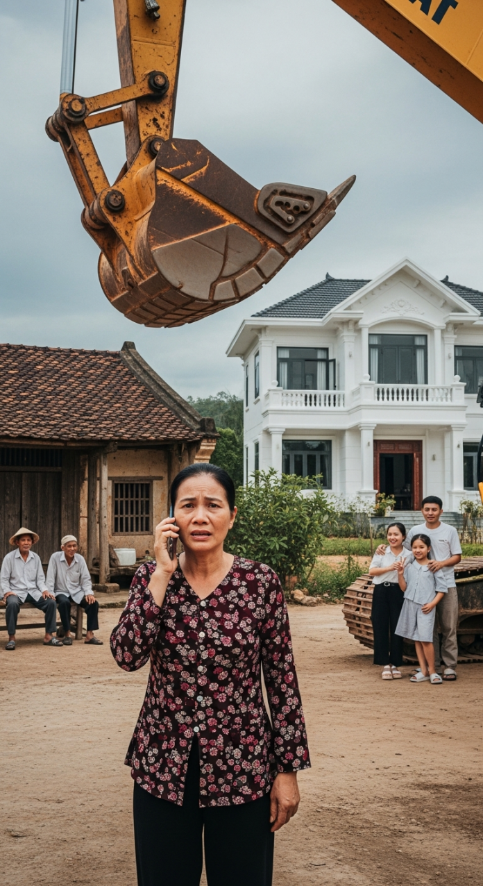 Hai mươi phút sau, tiếng máy xúc vang lên. Khói bụi cuộn lên mù mịt. Anh họ lúng túng, chạy ra hốt hoảng: