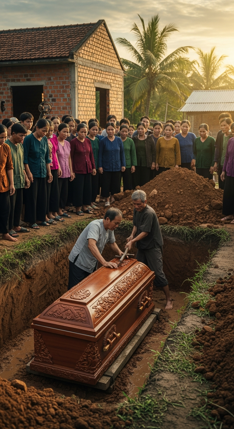 Lời vừa dứt, xung quanh đã râm ran tiếng bàn tán. Đất được bới thêm, bùn nhão tràn ra hai bên, và rồi… một góc cạnh bằng gỗ sẫm màu lộ ra.