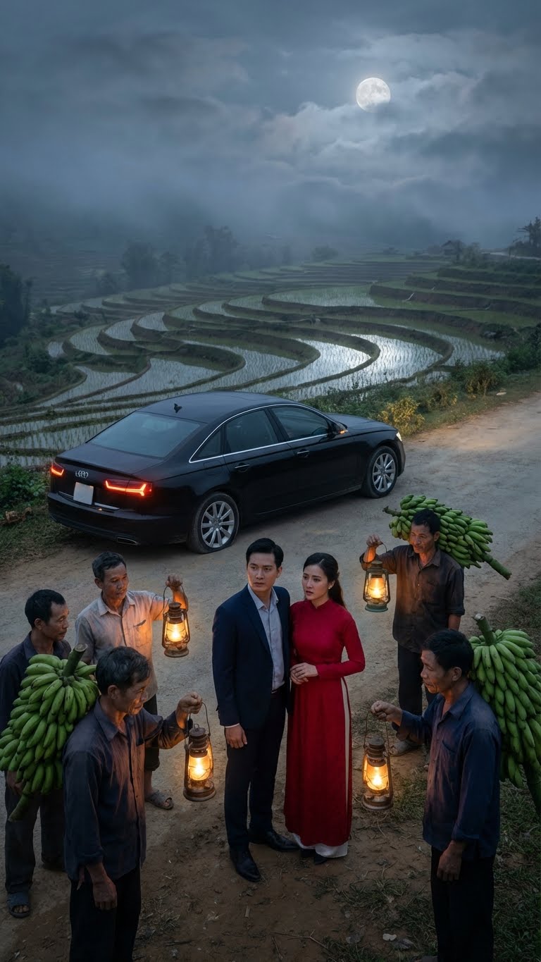 Mẹ tôi đứng ngay trước cổng, tay nắm chặt ổ khóa, khuôn mặt bình tĩnh đến lạ. Bà nhìn từ đầu đến chân nhà trai – những bộ quần áo ướt sũng, những nải chuối xanh tím tái, chiếc ô tô bỏ lại giữa đường, rồi nhìn thẳng vào anh.