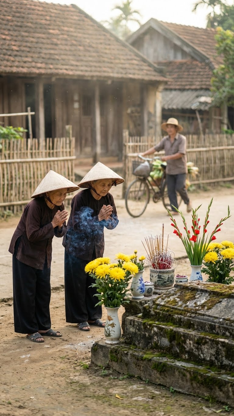 Bất giác, tôi nhận ra: không hề có một người quản trang cố định nào cả. Ngôi mộ được dọn bởi mọi người trong làng, mỗi người một chút, âm thầm, không ai khoe khoang.