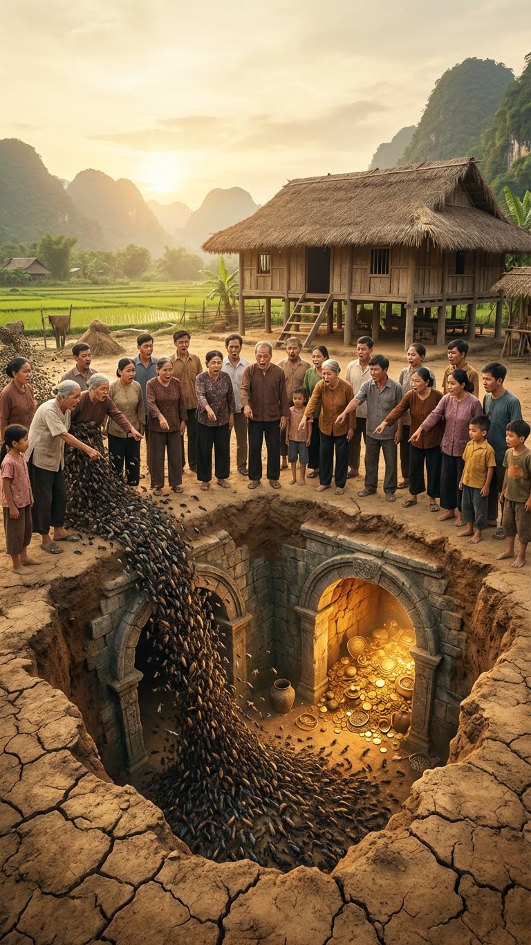 “Dưới mảnh đất này có một hầm cổ. Khi ta cày đất năm ấy, vô tình mở ra miệng hầm. Nhưng trong hầm không phải báu vật… mà là tổ ong cổ. Loài ong này không tấn công người, nhưng cực kỳ nguy hiểm nếu tổ bị phá.”