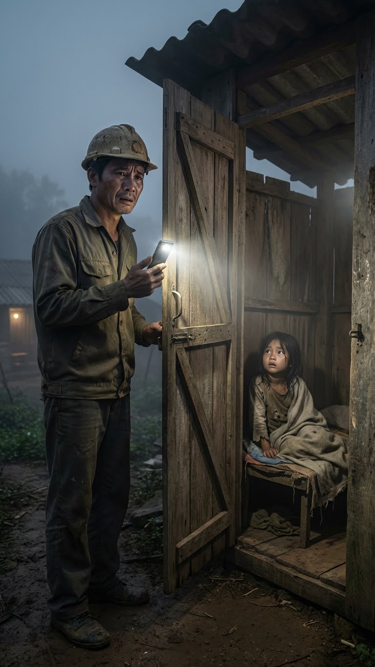 Trên một tấm giường xếp cũ, không màn, không chiếu — bé Vy đang co ro quấn tấm chăn mỏng như khăn giấy, ngay bên cạnh bức tường chuồng lợn còn lấm bùn.