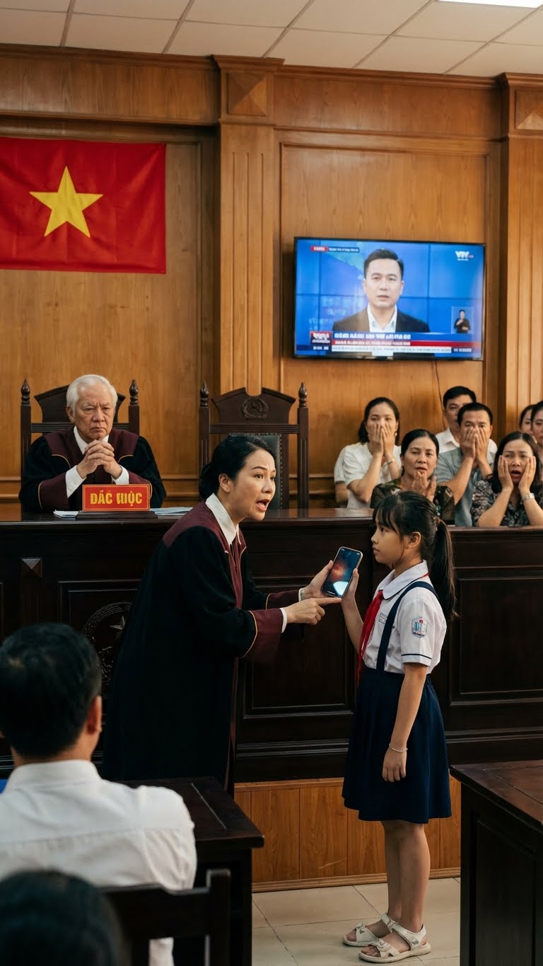 Từng giây trôi qua, lòng tôi nghẹn lại. Tôi đã từng cố giấu cô bé khỏi những cơn tức giận của Huy, nhưng anh ta vẫn tìm cách lẻn vào. Sự thật bây giờ hiện rõ mồn một trên màn hình, và mọi người trong phòng xử đều chết lặng.