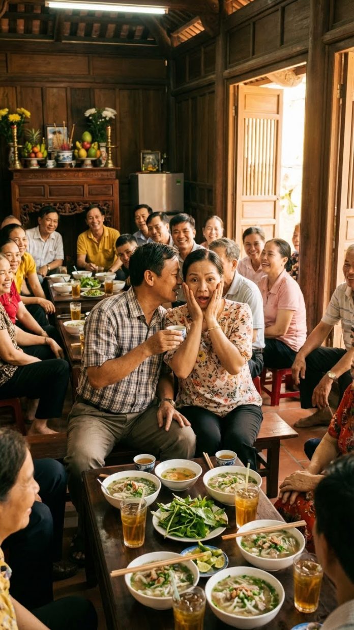 Giữa mùi nhang khói và tiếng lách tách của bát đĩa, chị Lan – người chị họ lấy chồng giàu ở tỉnh, vốn nổi tiếng là “loa phóng thanh” của dòng họ – tiến về phía tôi. Chị đeo một chiếc nhẫn kim cương to bản, tay cầm ly rượu vang đỏ, giọng oang oang: