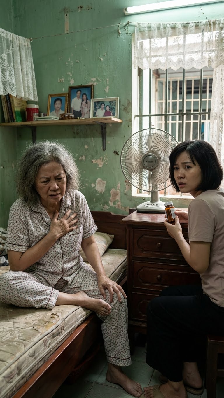 Bệnh tim của bà Lan bắt đầu từ năm năm trước. Bác sĩ kê thuốc, nhưng chị Hoa luôn tìm cách giảm liều. “Thuốc đắt quá mẹ ơi, con mua loại rẻ hơn nhé?” Bà Lan lắc đầu, nhưng chị ta vẫn làm theo ý mình.