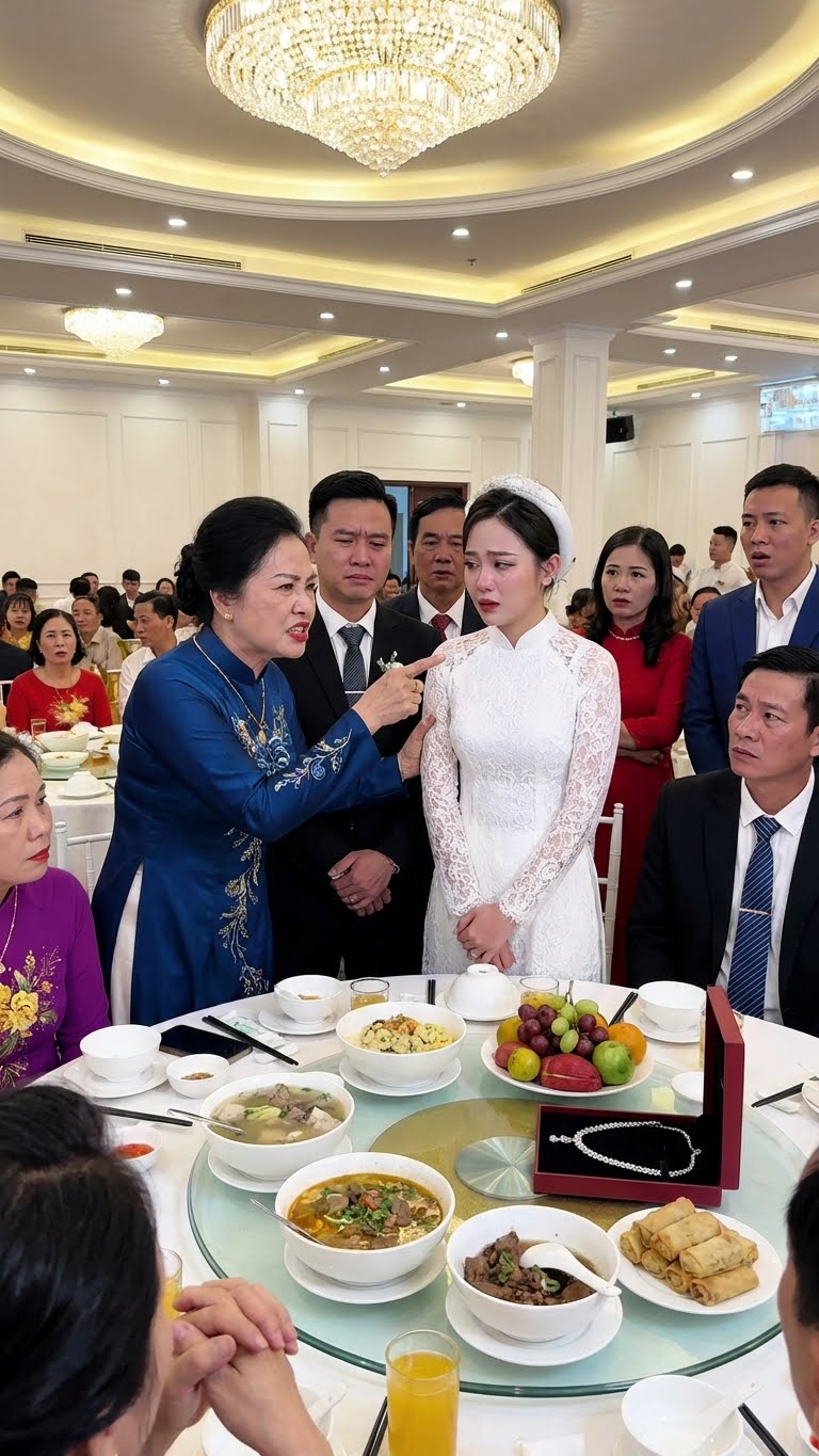 Mẹ chồng tôi – bà Hạnh – ngồi ở bàn chủ hôn, cổ đeo sợi dây chuyền kim cương lấp lánh. Đó là món bà khoe suốt mấy ngày nay, nói rằng “cả thành phố này không mấy người có được”.