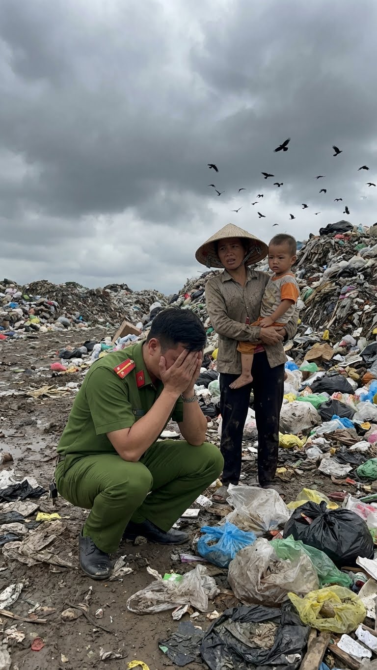 Đến bãi rác, mùi hôi và khói rác đốt phả lên như tạt thẳng vào mặt. Đội của anh chia làm hai hướng, kiểm tra các điểm tập kết phế liệu. Khi đi ngang khu lán dựng bằng bạt cũ, Trỉnh nghe tiếng trẻ con ho sù sụ. Anh quay lại theo phản xạ, nhìn thấy một bé gái khoảng bảy, tám tuổi đang bưng thùng nhựa, tay chân lem nhem, áo đồng phục nhàu nát. Con bé ngước lên, đôi mắt đen tròn làm anh khựng lại: cặp mắt giống hệt anh.