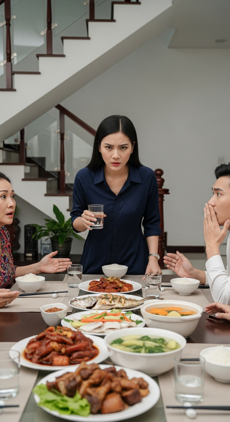 Bữa cơm có đủ món: cá kho, canh chua, thịt luộc, rau xào. Nhưng không khí thì… căng như dây đàn. Cô hỏi tôi làm gì, quê ở đâu, ba mẹ làm nghề gì. Tôi trả lời lễ phép, còn rót nước, gắp thức ăn cho cô.
