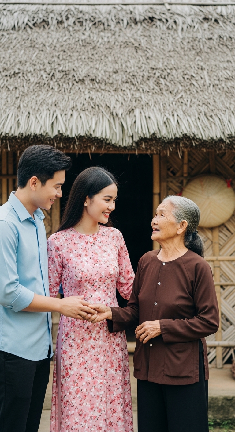 Vậy là một tuần trước hôn lễ, tôi đánh liều thử lòng em. Tôi rủ em về quê thăm mẹ — nhưng không đi xe hơi như mọi khi, mà bắt xe khách, về căn nhà cũ kỹ giữa đồng ruộng, nơi mẹ tôi vẫn sống một mình, mái nhà nghiêng ngả, tường bong tróc.
