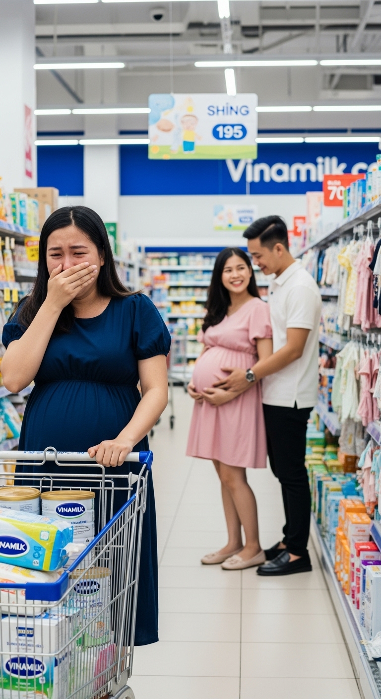 Anh đang đẩy xe hàng, đi cạnh một người phụ nữ bụng bầu lớn. Cô ta mệt, hơi nhăn mặt, Minh liền cúi xuống chỉnh quai túi, đỡ khuỷu tay giúp cô đứng vững. Họ nói chuyện với nhau nhẹ nhàng, thân mật đến mức… giống một cặp vợ chồng chuẩn bị đón con đầu lòng.