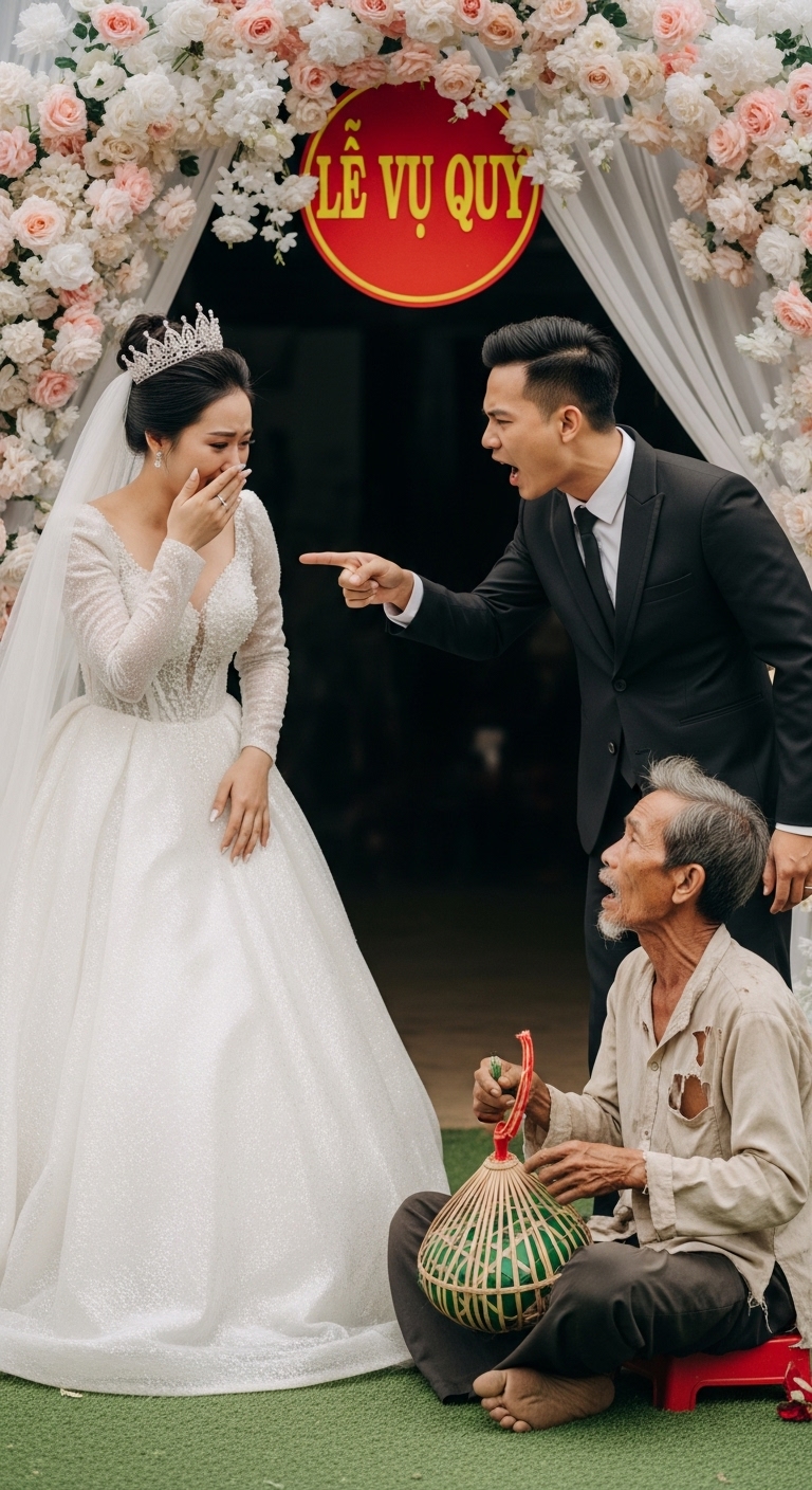 Bảo vệ định lôi ông ra, nhưng Tuấn đã nhìn thấy. Sợ khách khứa chú ý làm mất mặt, Tuấn sầm sập lao tới, giọng rít qua kẽ răng: – “Này ông già! Đi chỗ khác kiếm ăn! Đây là đám cưới 5 sao, không phải bãi rác. Biến ngay cho khuất mắt tôi”! Ông già run rẩy, ngước đôi mắt kèm nhèm lên, giọng thều thào: – “Cậu ơi… làm phúc cho lão xin chút đồ thừa. Lão đói quá… ba ngày nay chưa có gì vào bụng”…