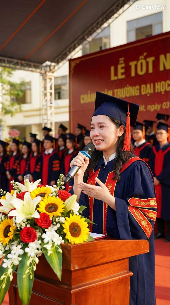 Nhưng đến hôm nay, ngày em nhận bằng khen thủ khoa tốt nghiệp, em chỉ nói đúng một câu trên bục phát biểu mà khiến cả hội trường hơn 1.000 người rơi nước mắt: