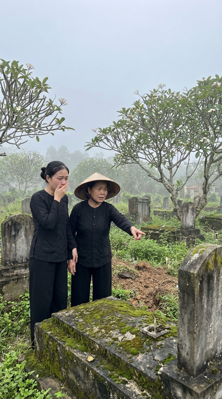 Khi đến nơi, không khí lập tức trở nên nặng trĩu. Mùi ẩm ướt của đất và mùi nhang tàn hòa quyện vào nhau. Bà Liên không dùng đèn pin. Ánh trăng lưỡi liềm mờ nhạt rọi xuống những hàng bia mộ im lìm.