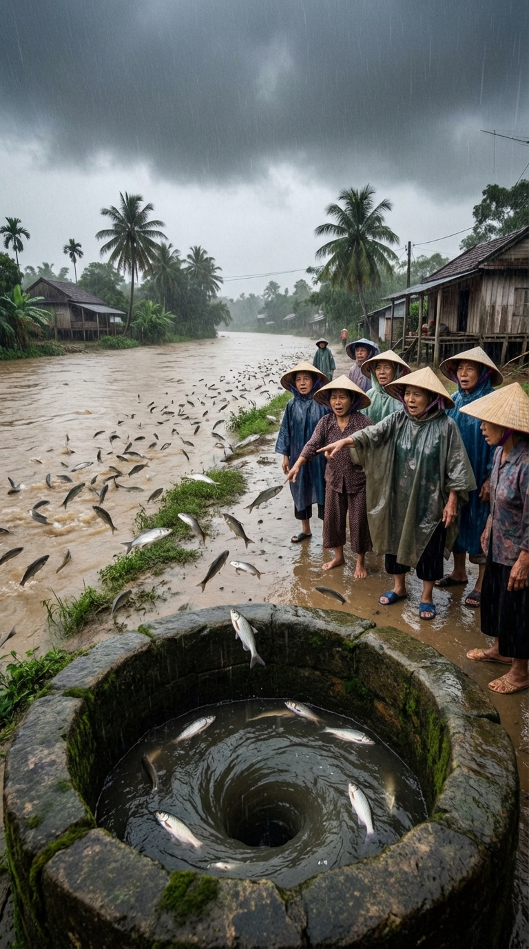 “Năm ơi, mau dọn vào đi! Đây là điềm báo đấy! Sắp có lũ lớn rồi, cá mới chạy như thế!” Ông Bảy run rẩy nói, cố kéo tay ông Năm.