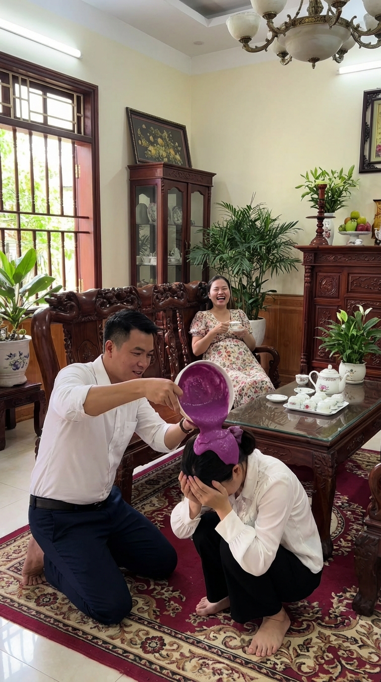 Mắm tôm chảy xuống mặt, xuống cổ, thấm ướt cả áo. Mùi tanh nồng bốc lên khiến tôi choáng váng. Tôi đứng sững giữa phòng khách, không kịp phản ứng, chỉ nghe tiếng cười khẩy của cô ta phía sau lưng anh.
