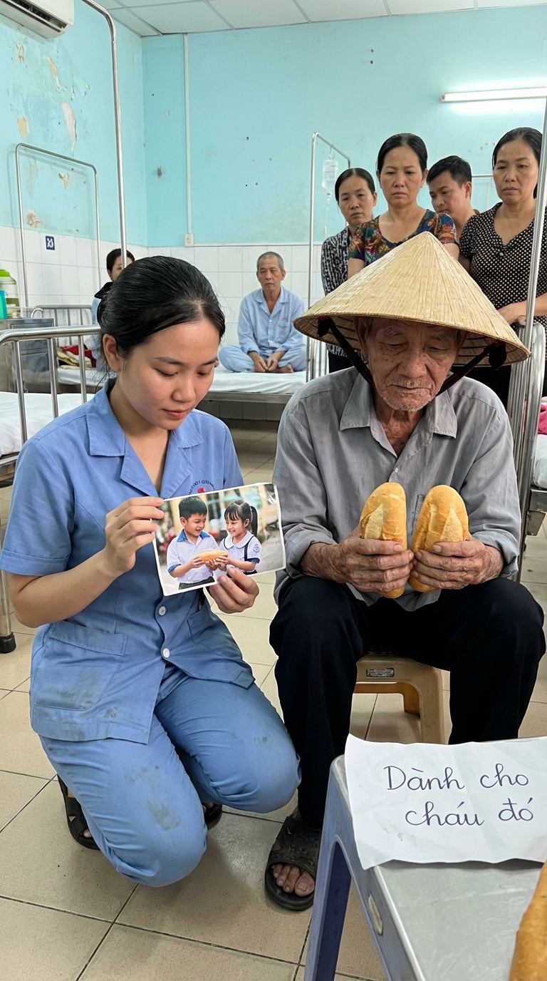 Hôm đó, cô xin trưởng ca cho ông Ba thêm suất ăn. Cô giấu thêm một ổ bánh mì vào túi áo ông.