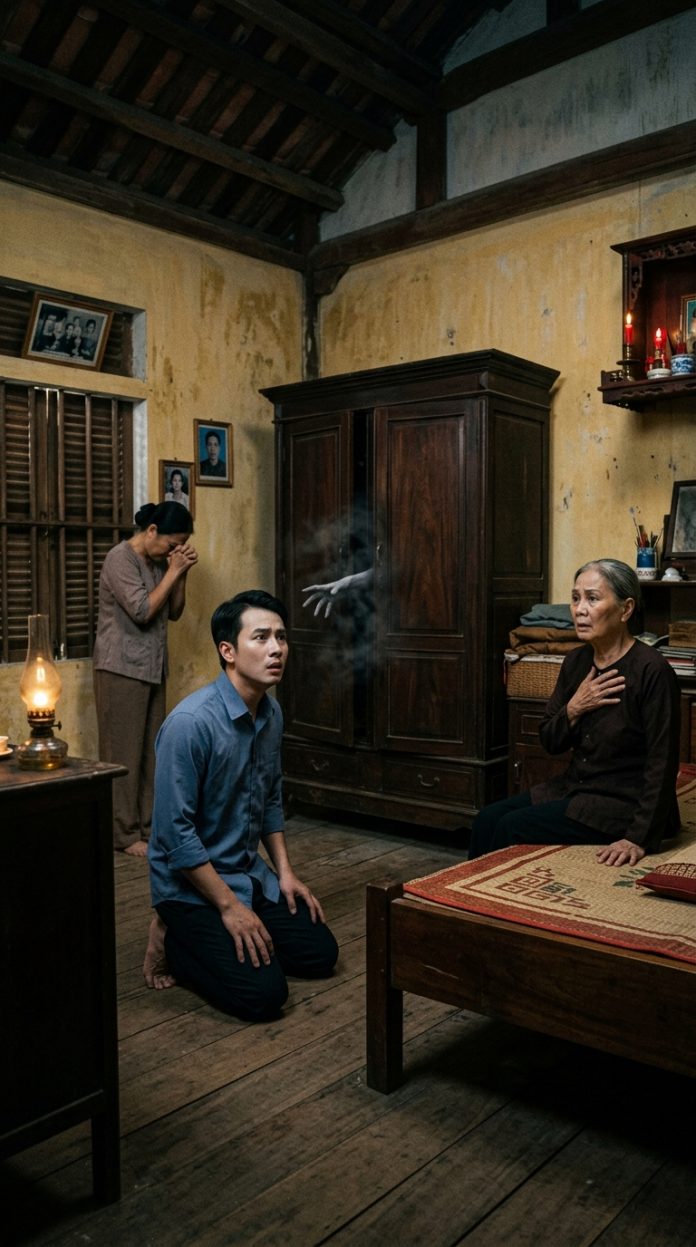 “Con… tủ… quần… áo…” – mẹ thều thào, rồi cố đưa tay lên.