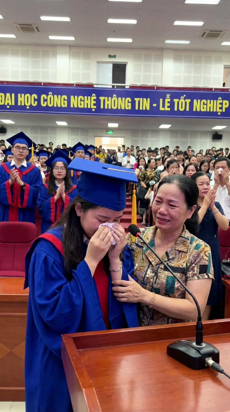 Nhưng hôm nay, trong hội trường hơn một nghìn người, cô nữ sinh thủ khoa bước lên bục nhận bằng khen.