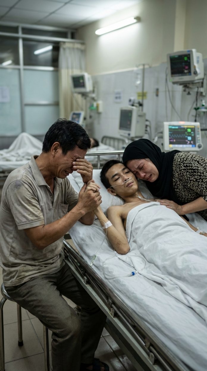 Sau 12 năm mất tích, ông Hòa và vợ tức tốc ra Hà Nội. Khi nhìn thấy con trai trên giường bệnh, cả hai chết lặng: Cường gầy trơ xương, da sạm, hơi thở yếu ớt.